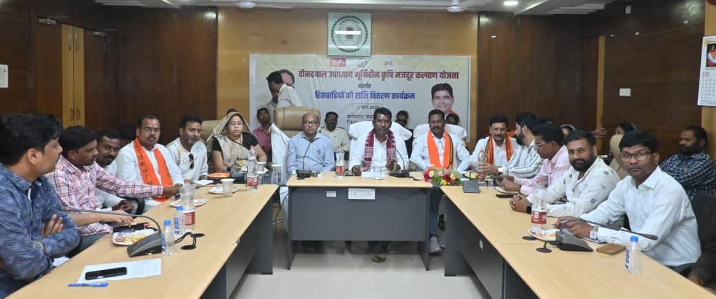राजिम विधायक श्री रोहित साहू ने 12 हितग्राहियों को राशि हस्तांतरण प्रमाण पत्र सौंपा (जिला...