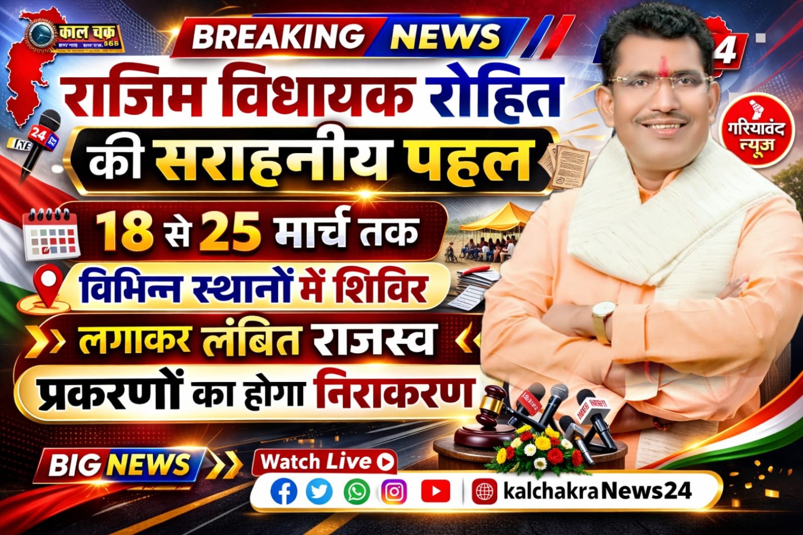 रानुप्रिया(रायपुर):- क्षेत्र के नागरिकों को राजस्व संबंधी समस्याओं से मुक्ति दिलाने के लिए राजिम विधायक रोहित साहू की सक्रियता रंग लाई है। विगत दिनों जिला मुख्यालय गरियाबंद में हुई बैठक में विधायक रोहित साहू ने कलेक्टर को निर्देश दिए थे कि राजस्व संबंधित प्रकरणों का निराकरण समय सीमा में होने चाहिए। विधायक के निर्देशों के बाद कलेक्टर के मार्गदर्शन में राजिम एसडीएम ने अनुविभाग के सभी राजस्व मंडलों में विशेष शिविर आयोजित करने के आदेश जारी कर दिए हैं। इन शिविरों का मुख्य उद्देश्य नामांतरण, बंटवारा, सीमांकन और नाम में त्रुटि सुधार जैसे महीनों से लंबित पड़े मामलों का मौके पर ही त्वरित निराकरण करना है। विगत दिनों विधायक रोहित साहू ने क्षेत्र भ्रमण के दौरान ग्रामीणों की शिकायतों को गंभीरता से लेते हुए कलेक्टर को निर्देशित किया था कि राजस्व मामलों में हो रही देरी को समाप्त किया जाए। विधायक ने स्पष्ट किया कि आम जनता को तहसील और दफ्तरों के चक्कर न काटने पड़ें, इसके लिए प्रशासन को जनता के बीच पहुँचना होगा।