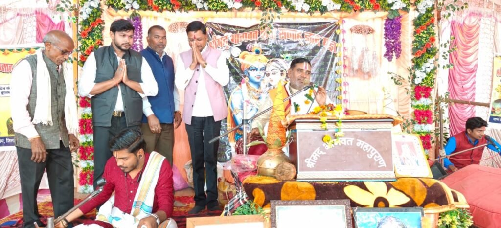 रानुप्रिया(रायपुर):- ग्राम जेन्जरा में साहू परिवार के सौजन्य से आयोजित संगीतमय श्रीमद्भागवत महापुराण कथा का आयोजन श्रद्धा, भक्ति एवं आध्यात्मिक वातावरण में भव्य रूप से संपन्न हो रहा है। कथा के अष्टम दिवस पर कथा व्यास आचार्य पं. वेदप्रकाश पांडेय जी के श्रीमुख से भगवान दत्तात्रेय के चौबीस गुरु, सुदामा चरित्र एवं भागवत चौतरी की प्रेरणादायी कथा का भावपूर्ण वर्णन किया गया।