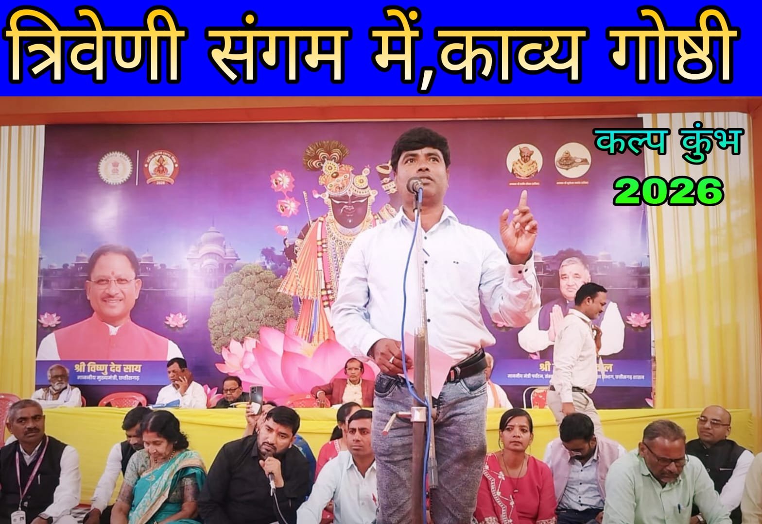 रानुप्रिया(रायपुर):- त्रिवेणी संगम राजिम कल्प कुंभ 2026 – 01 से 15 फरवरी तक चल रहा है जहां हजारों – लाखों दर्शनार्थी रोज मेले का आनन्द ले रहे हैं तथा प्रतिदिन विभिन्न सांस्कृतिक कार्यक्रमों की प्रस्तुतियां भी हो रही है। इसी क्रम में 14 फरवरी को छत्तीसगढ़ शासन के कर कमलों द्वारा राज्य स्तरीय विशाल कवि सम्मेलन का भी आयोजन किया गया। जहां विभिन्न ख्याति प्राप्त साहित्यकारों का समागम भी त्रिवेणी संगम में हुआ ,जहां विशाल जनसमूह द्वारा काव्यपाठ का रसपान किया गया।