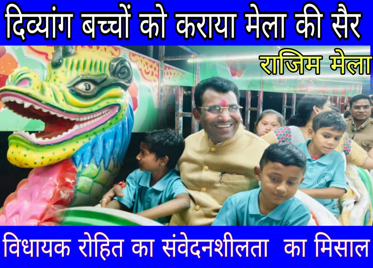 रानुप्रिया(रायपुर):- महानदी, पैरी और सोढुर के पावन त्रिवेणी संगम पर आयोजित राजिम कल्प कुंभ में कल अत्यंत भावुक और प्रेरक दृश्य देखने को मिला। क्षेत्रीय विधायक रोहित साहू ने अपनी व्यस्त दिनचर्या से समय निकालकर दिव्यांग बच्चों के साथ मेला भ्रमण किया। इस दौरान उन्होंने संकल्प सेवा संस्थान केंद्र के बच्चों को अपार स्नेह दिया और उनके साथ खुद भी झूला झूलकर और विभिन्न मनोरंजक गतिविधियों में भाग लेकर उनके चेहरों पर मुस्कान बिखेर दी। विधायक रोहित साहू ने दिव्यांग बच्चों के साथ राजिम कल्प कुंभ मेले का भ्रमण किया। इस दौरान उन्होंने बच्चों की पसंद का ध्यान रखते हुए उन्हें विभिन्न झूलों की सवारी कराई।